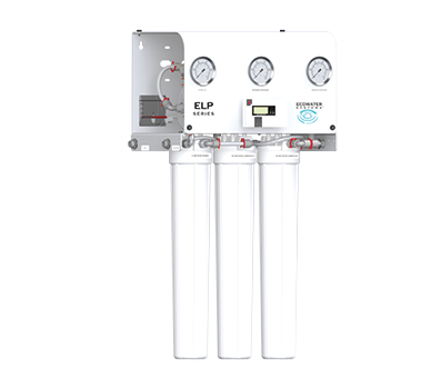ELP – Series Reverse Osmosis Systems are engineered in response to the need within the light commercial market for a system without a pump. The ELP – Series systems provide a cost–effective solution for customers and are easy to install and maintain. These systems are designed to be wall mounted, and feature a 5 – Micron Sediment and 10 – Micron Carbon Pre–Filters, Slim Line Cartridge Housings, 500 GPD membrane and membrane housing.